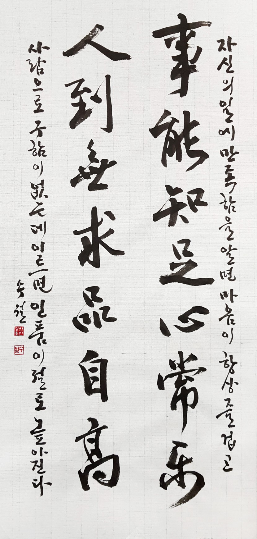 事能知足心常樂 (사능지족심상락) 人到無求品自高 (인도무구품자고)