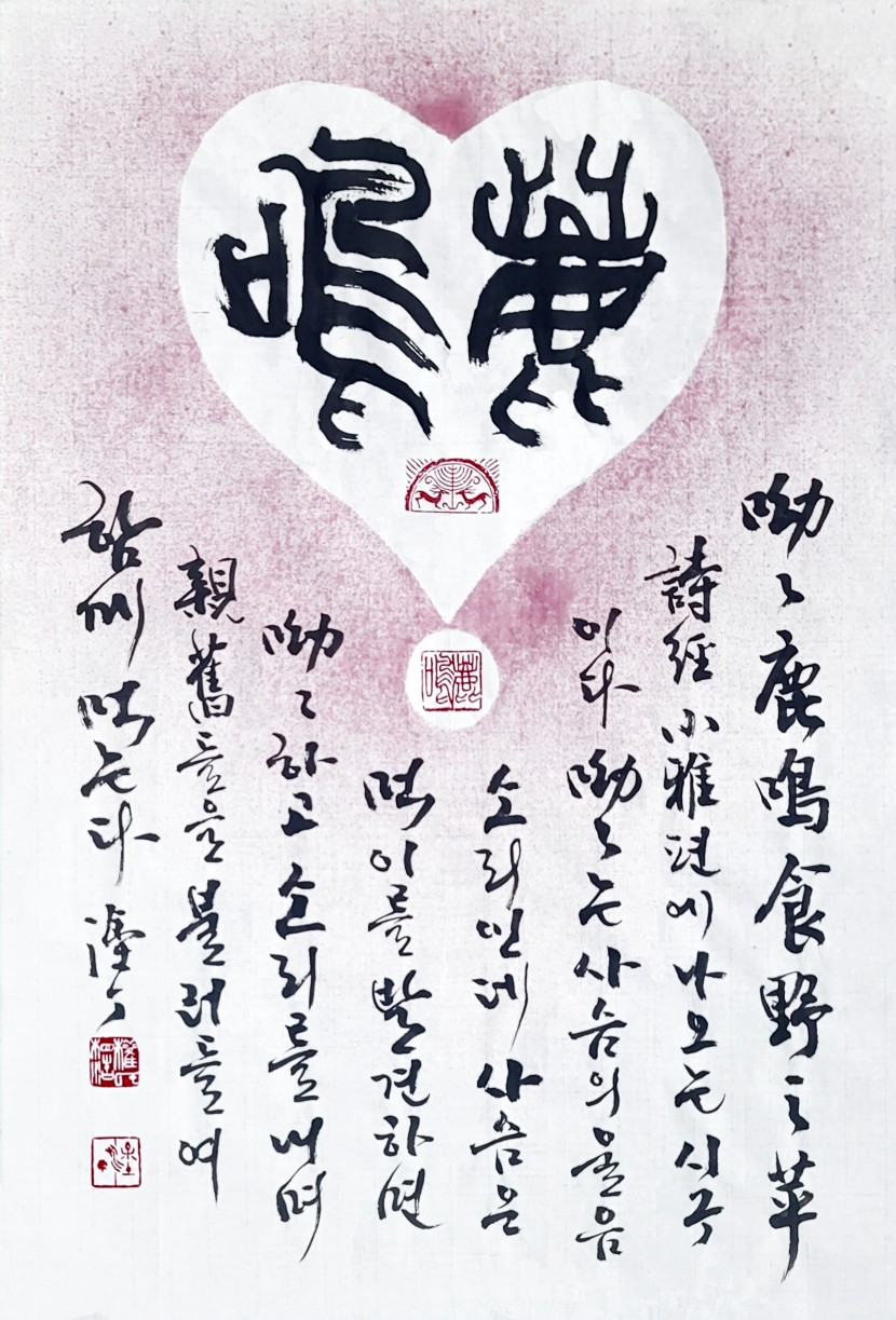 鹿鳴(녹명)이란 먹이를 발견한 사슴이 다른 사슴을 부르기 위해 내는 울음소리이다. 47x68cm