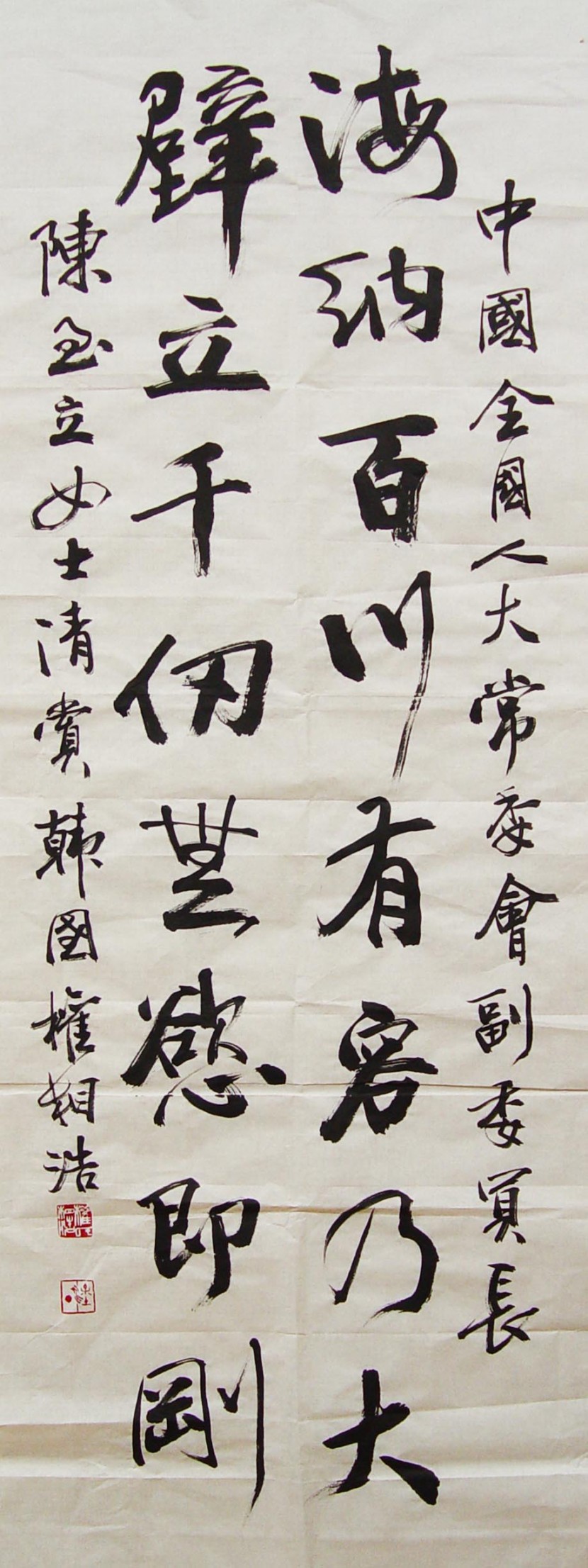 중국 전국인대상위회 부위원장 진지립님을 위한 글씨