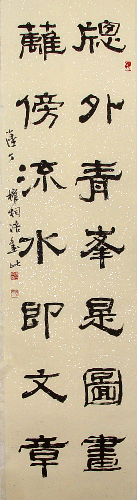 Blue mountain outside is a picture, stream fenceside is a sentence.(창밖의 푸른 산은 그림과 같고, 울타리 옆 시내는 문장과 같다.)