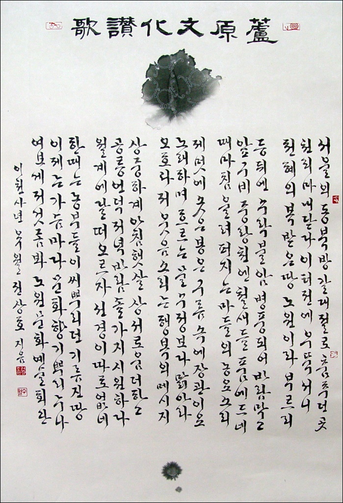 노원문화예술회관 개관 기념을 앞두고 찬양하는 글을 시조 5수로 지었다.