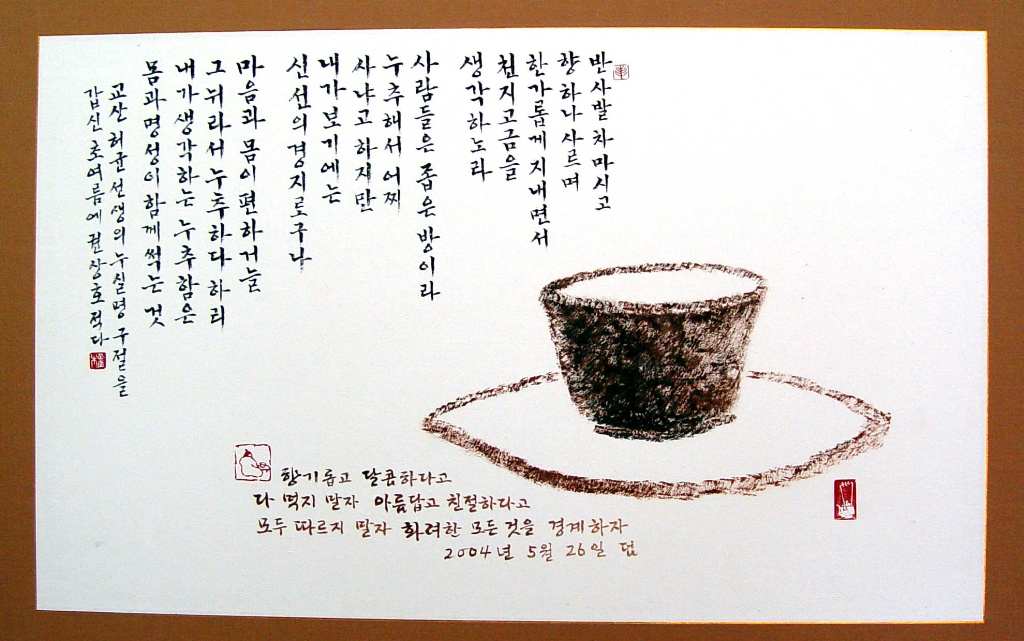 차 한잔 드세요. 전시 중 처음으로 판매된 작품.