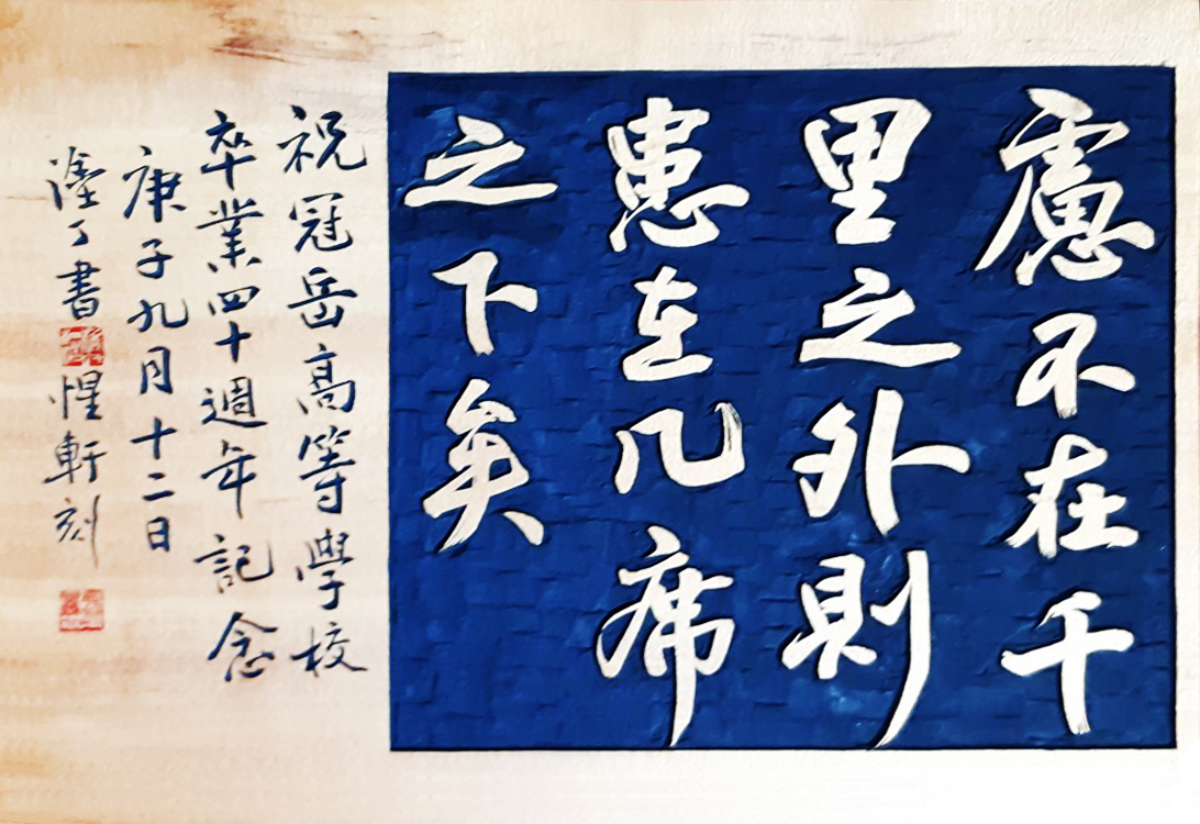 下端脇書: 경축 관악 고등학교 졸업 40주년 기념 경자 구월 십이일 도정 권상호 서 성헌 김기철 각