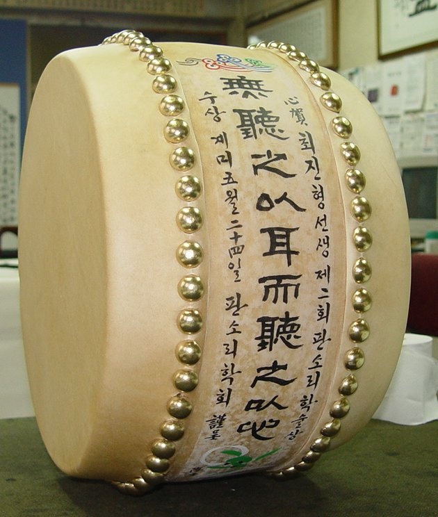 부상으로 받으신 북에 그림과 글씨를 써 올렸다.