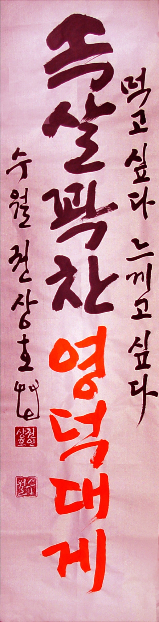 속살 꽉찬 영덕 대게 다리를 연상하여 쓴 글씨입니다.