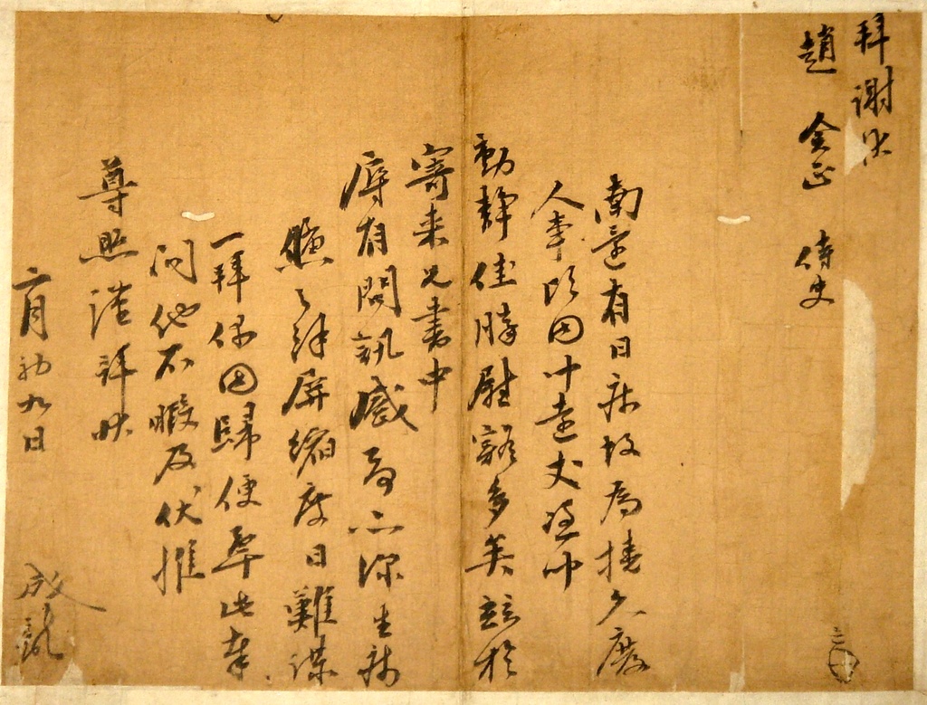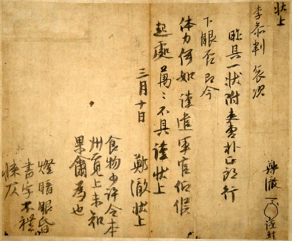 올해 서거 400주년을 맞이하는 서애 유성룡(1542~1607)은 자신이 오랜 기간 병환으로 인해 한 번 찾아뵙지 못하고 문안인사만 전하게 되는 아쉬움을 토로하였고(사진 위), 상사(喪事)를 당한 이참판에게 안부와 함께 음식을 보내는데서 송강 정철(1536~1593)의 살가운 정을 느낄 수 있다.(사진 아래)
