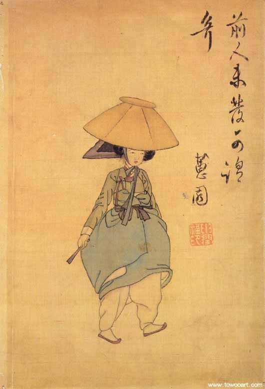 전모(氈帽)를 쓴 여인(女人)