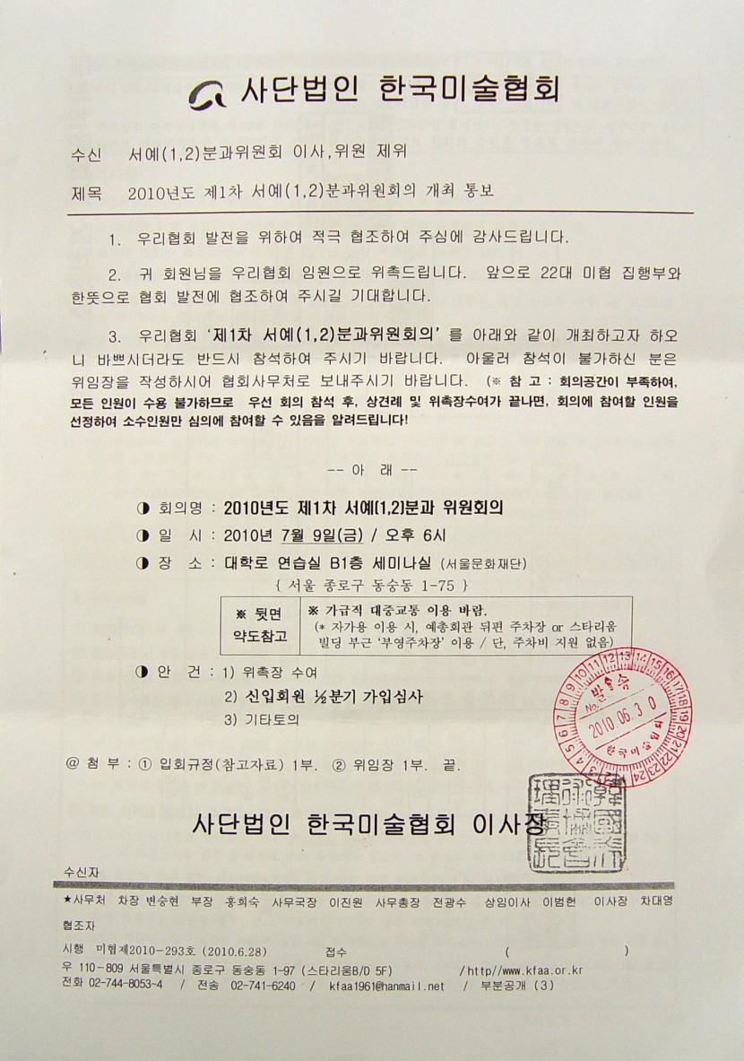 2010년도 제1차 서예분과 위원회의