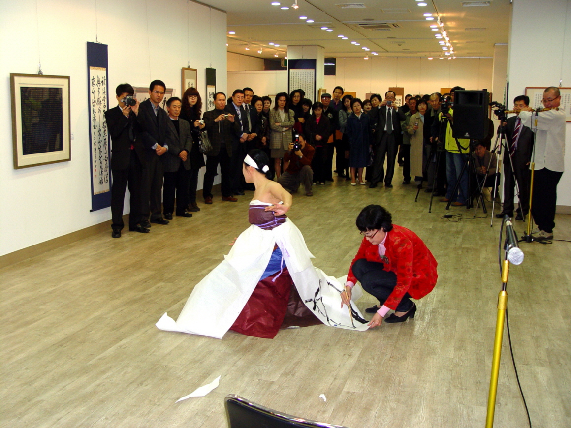 - 춤삼매경에 빠진 박일화님과 치마에 휘호중인 고운 허명숙님