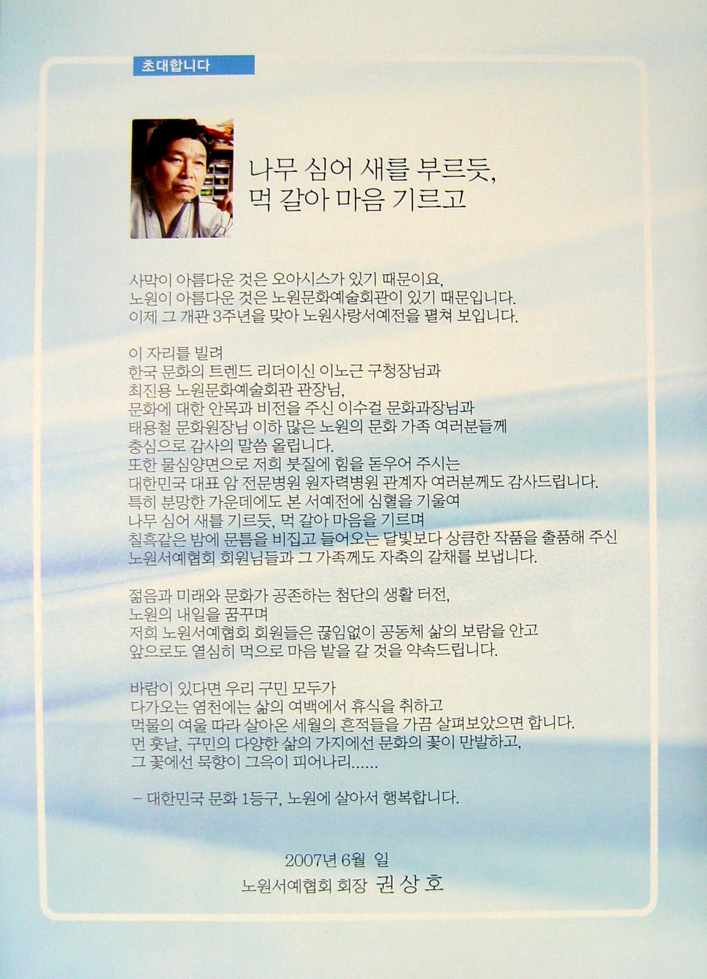 이제 그 개관 3주년을 맞아 노원사랑서예전을 펼쳐 보입니다.