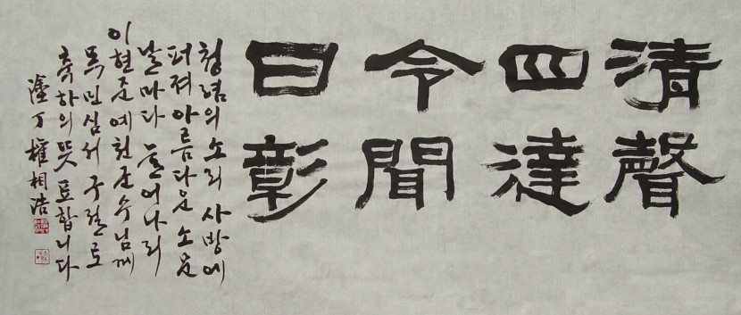 이 글에서 淸聲(청성)이란 ‘淸廉(청렴)의 名聲(명성)’을 말한다. 우리나라가 선진국으로 가기 위해서는 물질적 풍요보다 선행되어야 할 것이 국가 청렴도이다. 청렴도는 높이고, 부패지수는 낮추어야 진정한 선진국으로 진입할 수 있다. 청렴한 사회가 되어야 民(민)과 官(관)이 좋은 생각으로 좋은 만남을 가질 수 있다.