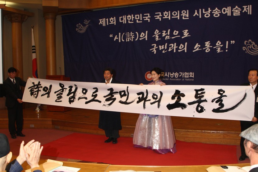 지난 11월 17일 오후 4시, 국회의원회관 소회의실에서 ‘詩의 울림으로 국민과 소통을!’이라는 주제로, ‘제1회 대한민국 국회의원 시낭송예술제’가 열렸다. 시낭송을 통하여 여야 국회의원의 화합을 기하고자 전국시낭송가협회(박운초 회장)가 주관하고 한국문인협회(정종명 이사장)와 환타임스(김선적 회장)가 후원한 각별한 자리였다.