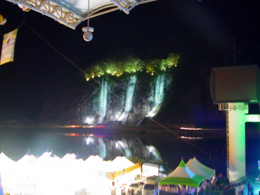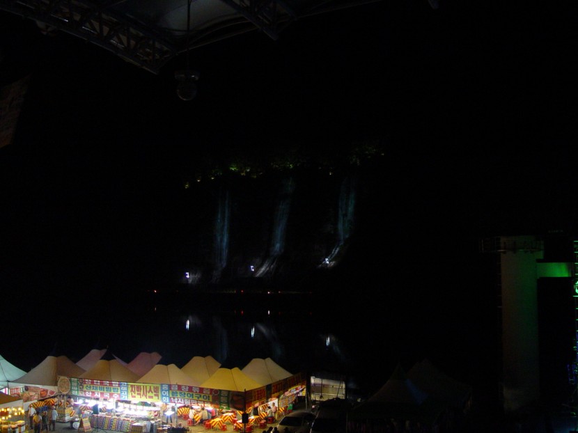남한강 건너편에서는 폭포수 줄기가 여름밤을 식혀주고...