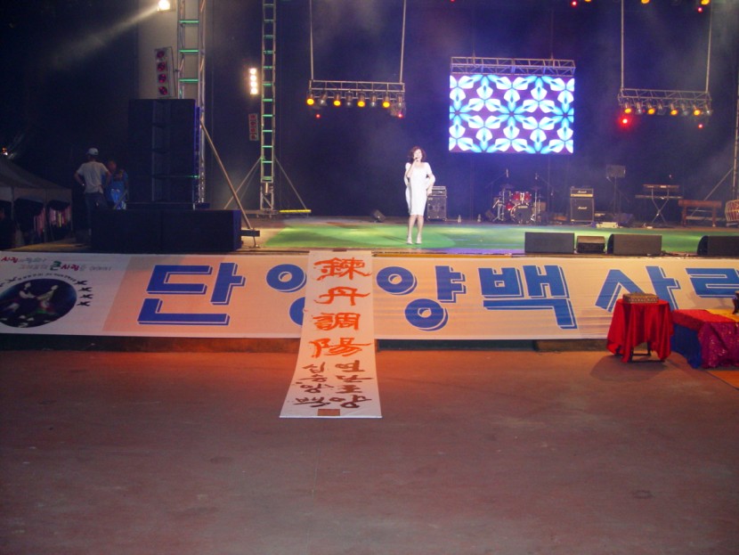 수변무대에서 주현미씨가 열창을 하고 있다.