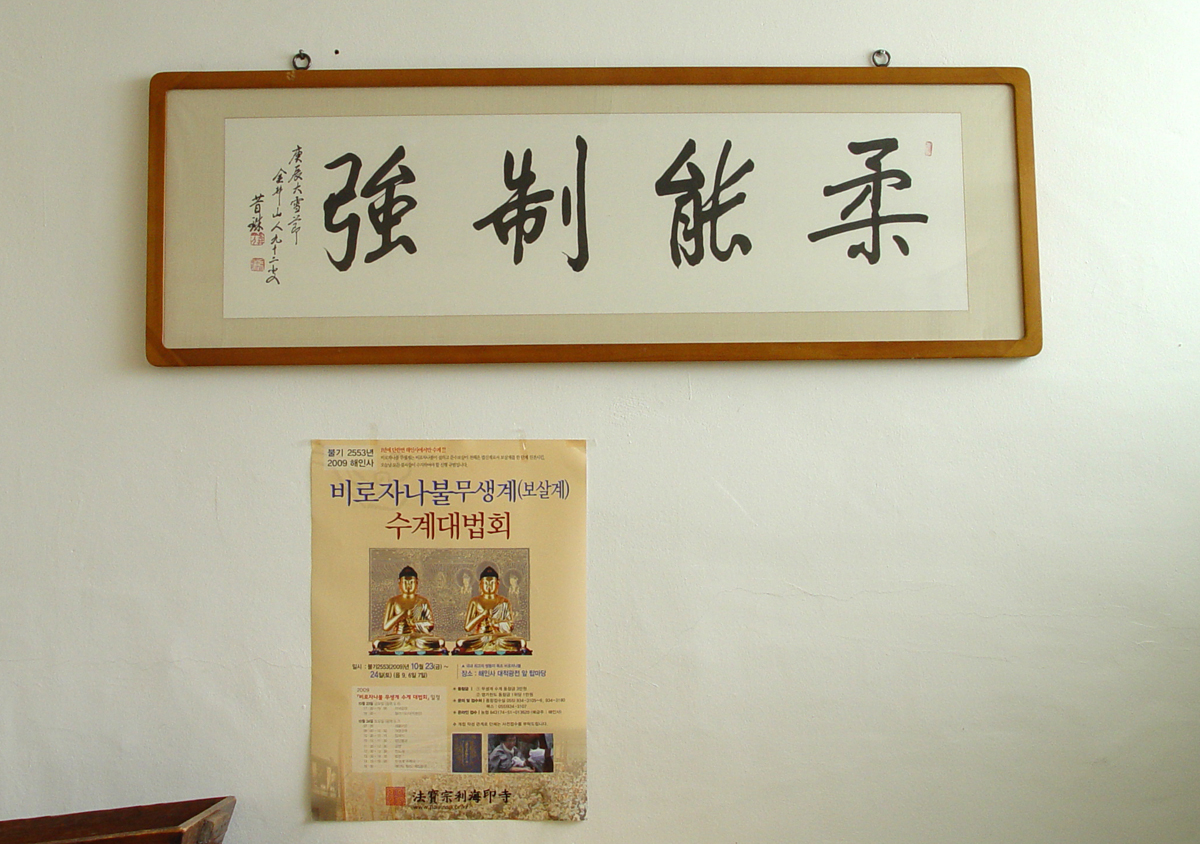 추사체로 쓴 唯善是寶(유선시보 - 사장님의 춘부장 정암 선생 글씨)와 柔能制强(유능제강 - 석주선생 92세 때의 글씨) 현판에 걸려 있었다.
