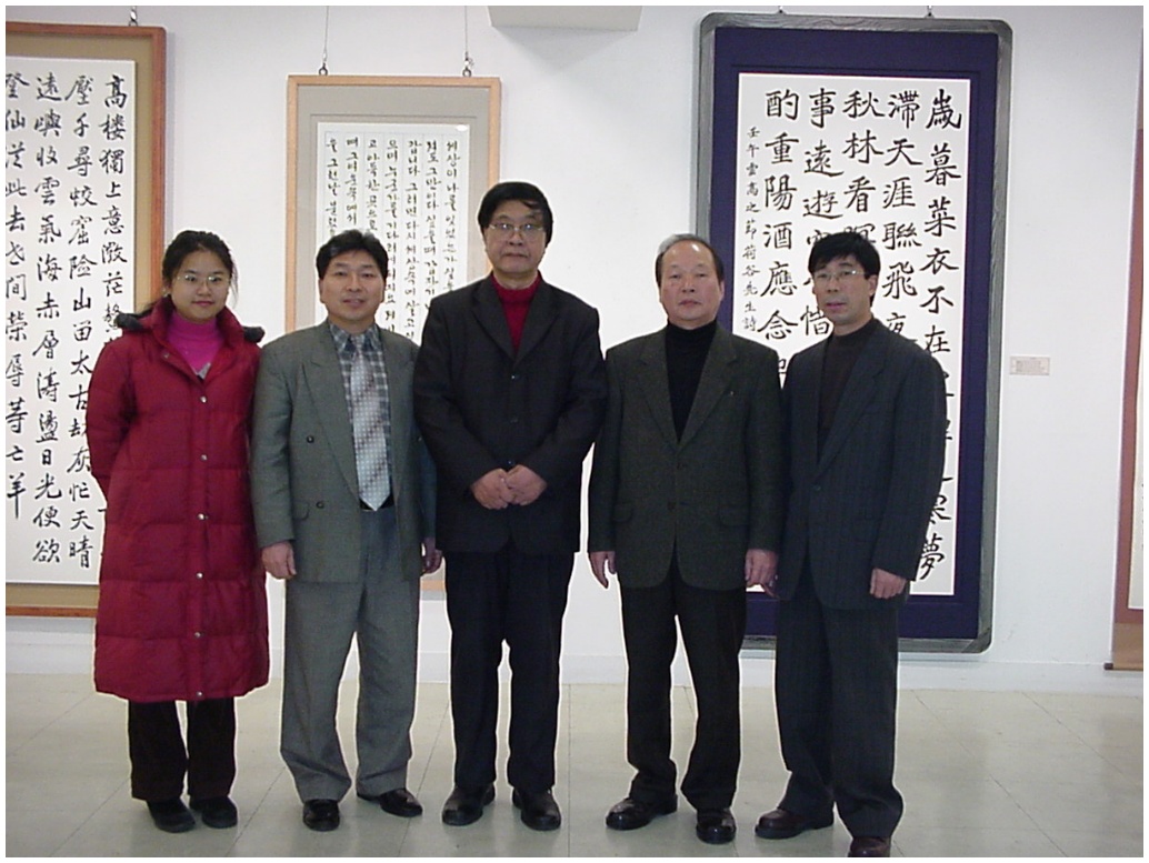 왼쪽에서 부터 류가, 권상호, 류증부, 김양동, 안해림. 제2회 대전대 서예과 졸업작품전에서(백악예원) 2002. 11. 24.
