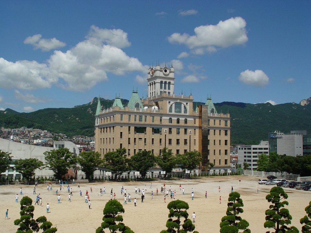 운동장에서 뛰어노는 고등학생들과 하늘의 상서로운 구름, 이 모두가 자연이다.