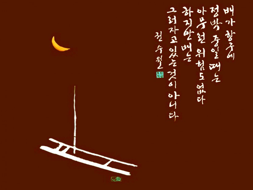 ‘추강(秋江)에 밤이 드니 물결이 차노매라. / 낚시 들이치니 고기 아니 무노매라. / 무심한 달빛만 싣고 빈 배 저어 오노라.’