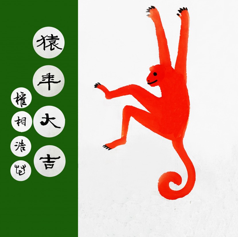 금년은 붉은 원숭이의 해이기 때문에 붉은 색으로 허공을 나는 원숭이, 만세를 부르는 원숭이 모습을 그려 보았습니다. 새해의 새 다짐, 큰 변화 큰 성과 있으시길 두 손 모아 기원합니다.
