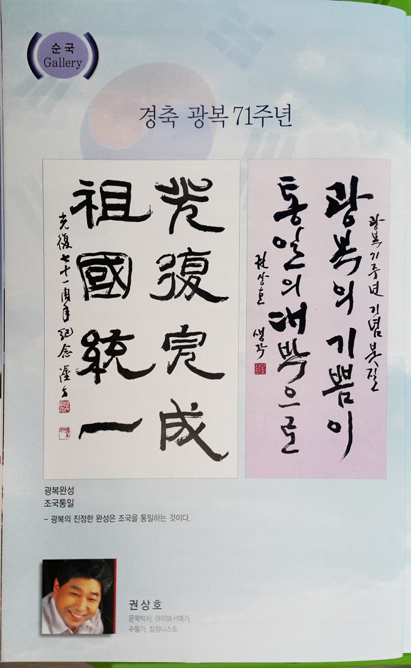 월간 <순국> 초청 '순국 gallery' 광복 71주년 기념 휘호