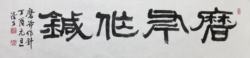 * 작품 내용 - 마부작침(磨斧作鍼) 針의 본자는 鍼이다. 직역하면 '도끼를 갈아 바늘을 만든다'이니, 아무리 힘들고 어려운 일이라도 끈기 있게 매달리면 마침내 달성할 수 있다는 말이다. 우공이산(愚公移山)과도 뜻이 통한다.