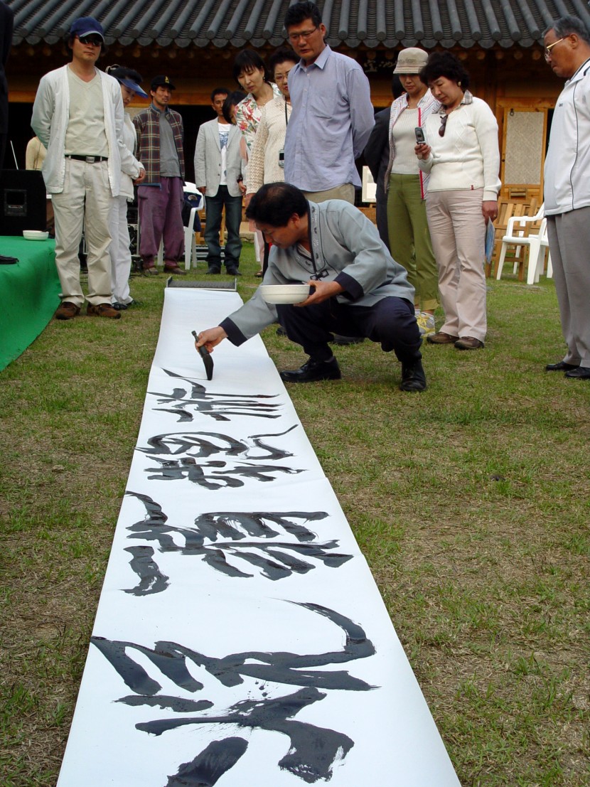 그러다가 낙엽이 대지를 어루만지고 옷깃에 차가운 바람이 엄습해 올 때에는 찻물이 끓는 따뜻한 실내에서 헛헛한 가슴을 라이브 서예로 달래 보자. 그래도 외로움이 엄습해 오면 이름 없이 소리 없이 어느 한 곳을 묵묵히 지키며 살아가는 이름 없는 꽃처럼 은은한 묵향을 피워 보자. 머뭇거리지도 뒷걸음치지도 않는 물처럼 붓 가는 대로 마음을 맡겨 보자.