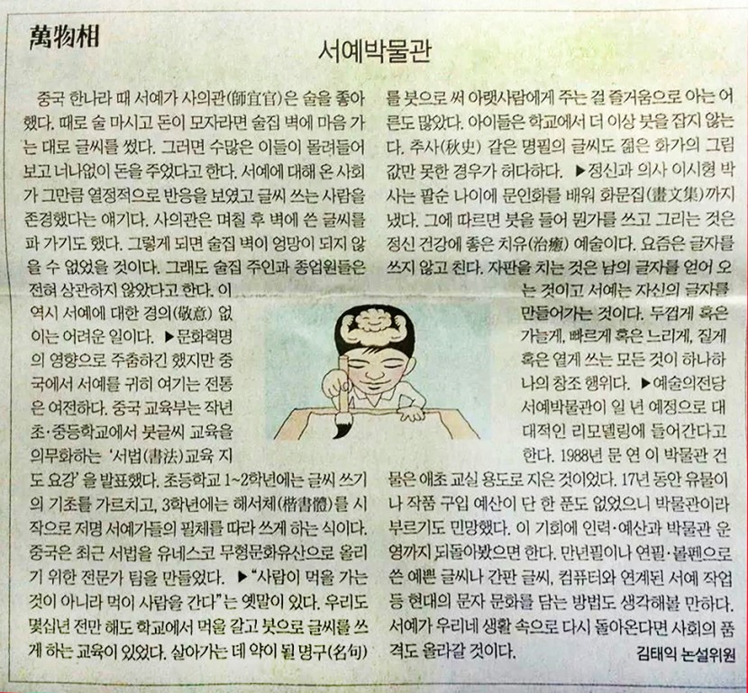 오랜만에 서예에 관심을 보인 언론 - 서예박물관 - 조선일보 만물상