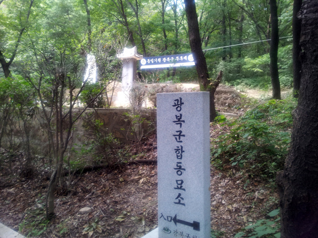 우이동 북악 산 중턱에 있는 광복군 합동묘소는 대한민국 상해 임시정부의 정규군으로 일본군와 교전하다 전사한 열입곱 분의 유골 영현을 한 무덤에 모신 성소(聖所)입니다.