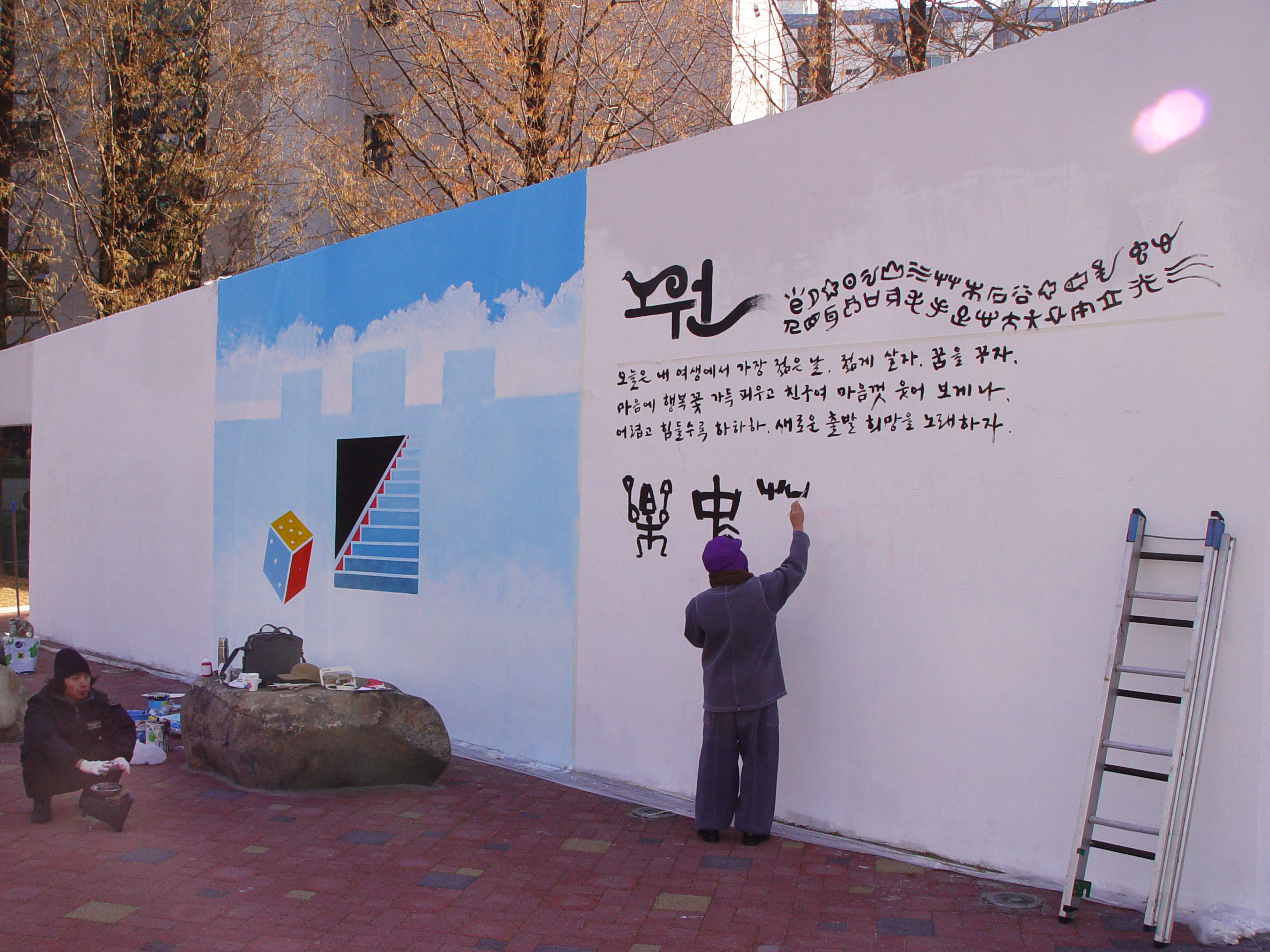 중계근린공원 평생학습관 옆에 길다란 낙서벽이 섰다.