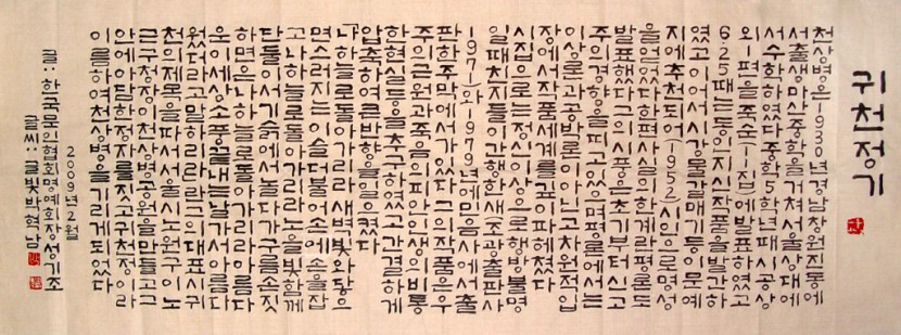 현판 글씨를 어렵게 받았으니 다음과 같다.
