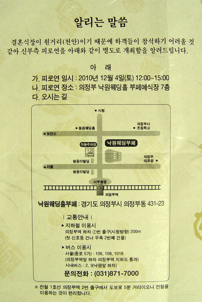 장소: 의정부 낙원웨딩홀부페( 지하철 1호선 의정부역 2번출구200m