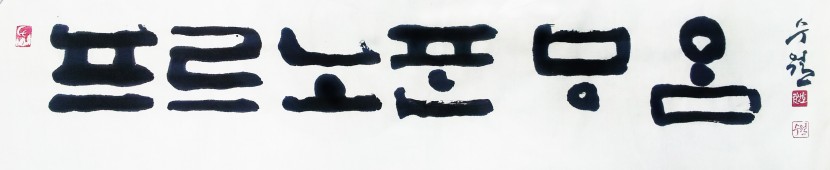 글씨: ‘푸르고 높은 마음’을 정음 고체로 썼다.