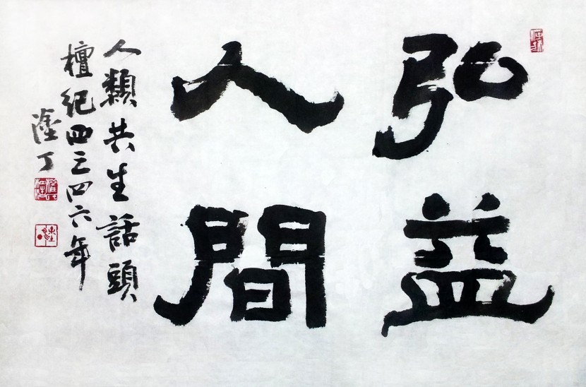 글씨: 예서 홍익인간(弘益人間)은 이제 인류 공생을 위한 화두가 되어야 한다.