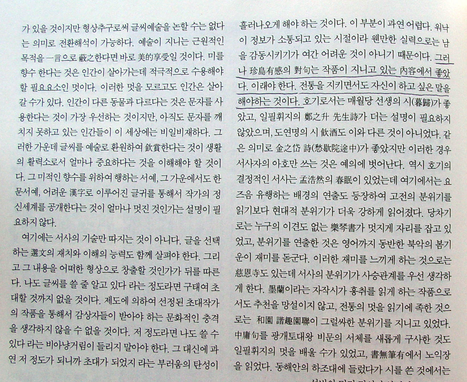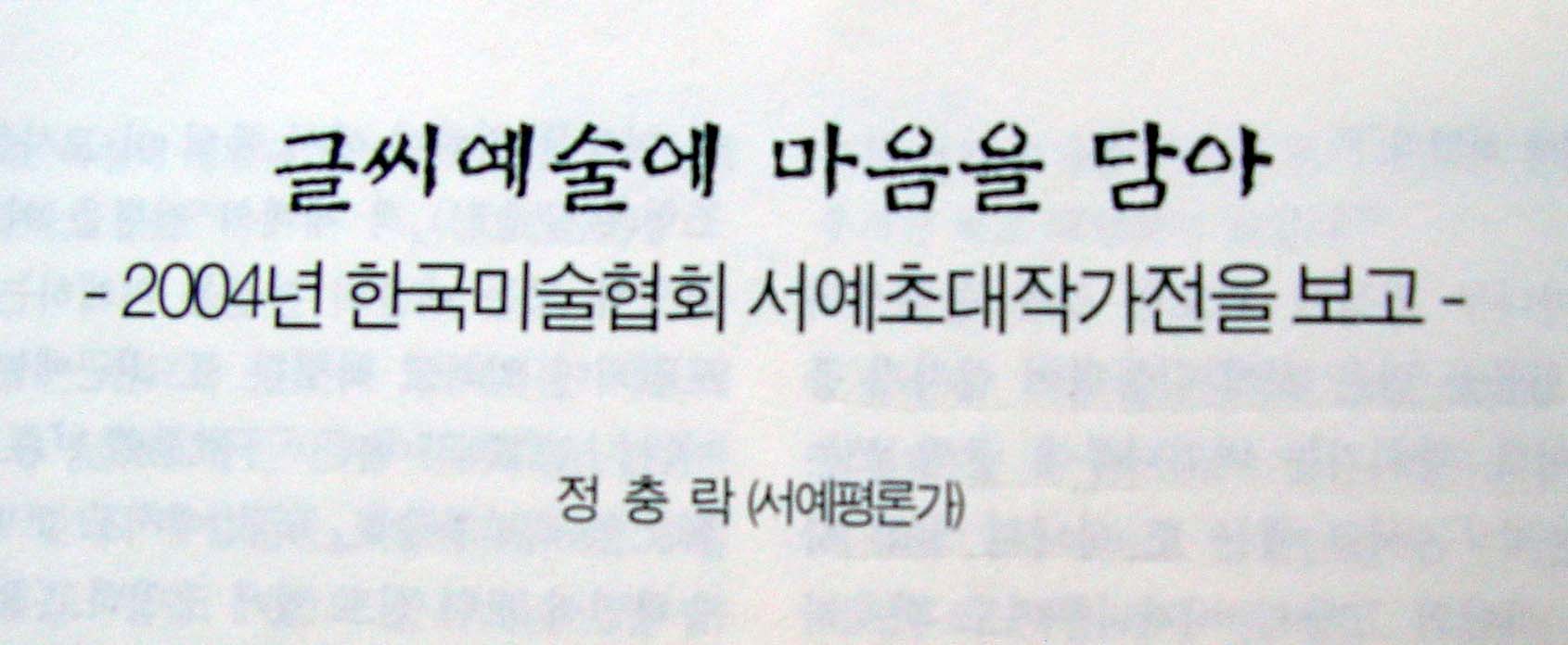 월간서예 2004년 5월호에 서예평론가 정충락 선생께서 쓴 서평 중에