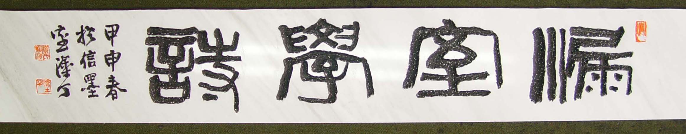漏室學詩(누실학시, 그리이스산 대리석, 14x86x2cm) 비가 새는 방에서도 시를 배운다.