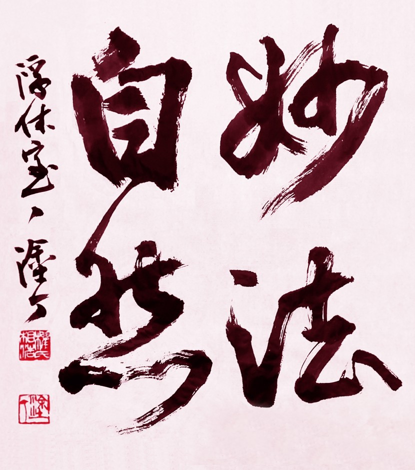 순간 심기일전하여 묘법자연(妙法自然)이란 말을 붓으로 써 본다. 불교에서 오묘하고 신기한 법문을 일러 묘법(妙法)이라 한다. 묘법자연은 평소 생각지 못한 기묘한 아이디어를 자연에서 얻었을 때 이르는 말이다.