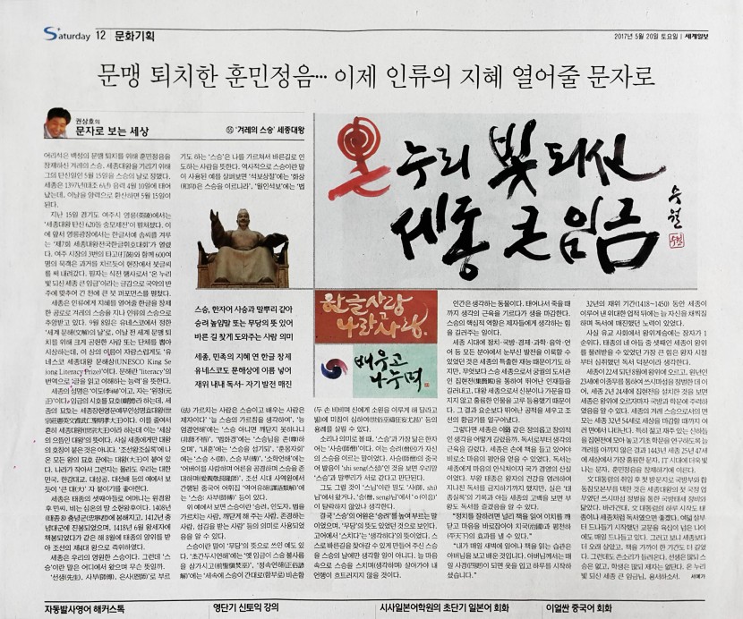 세계일보 문화기획 - 권상호의 문자로 보는 세상 55