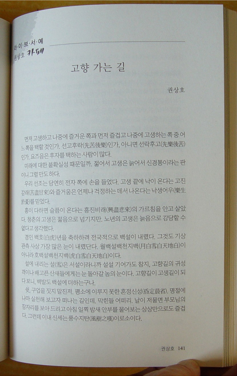 라이브 서예. 고향 가는 길(표지에 소개)