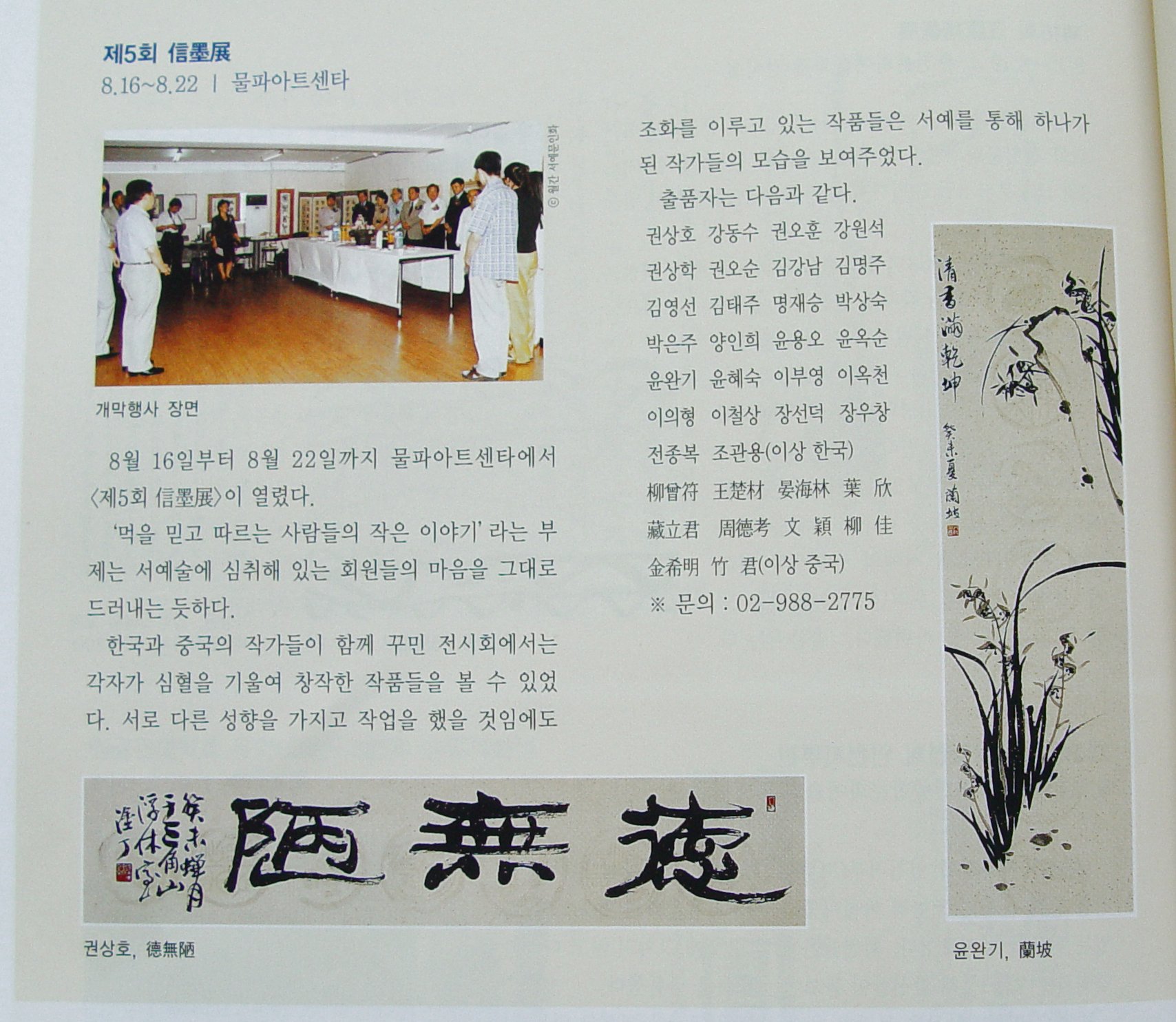 월간 <서예문인화> 2003년 9월호에 제5회 신묵회전 내용이 소개되었다.