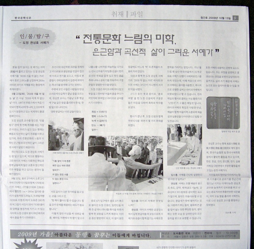 한국문학신문 인물탐구- 서예가 도정 권상호 (창간호)