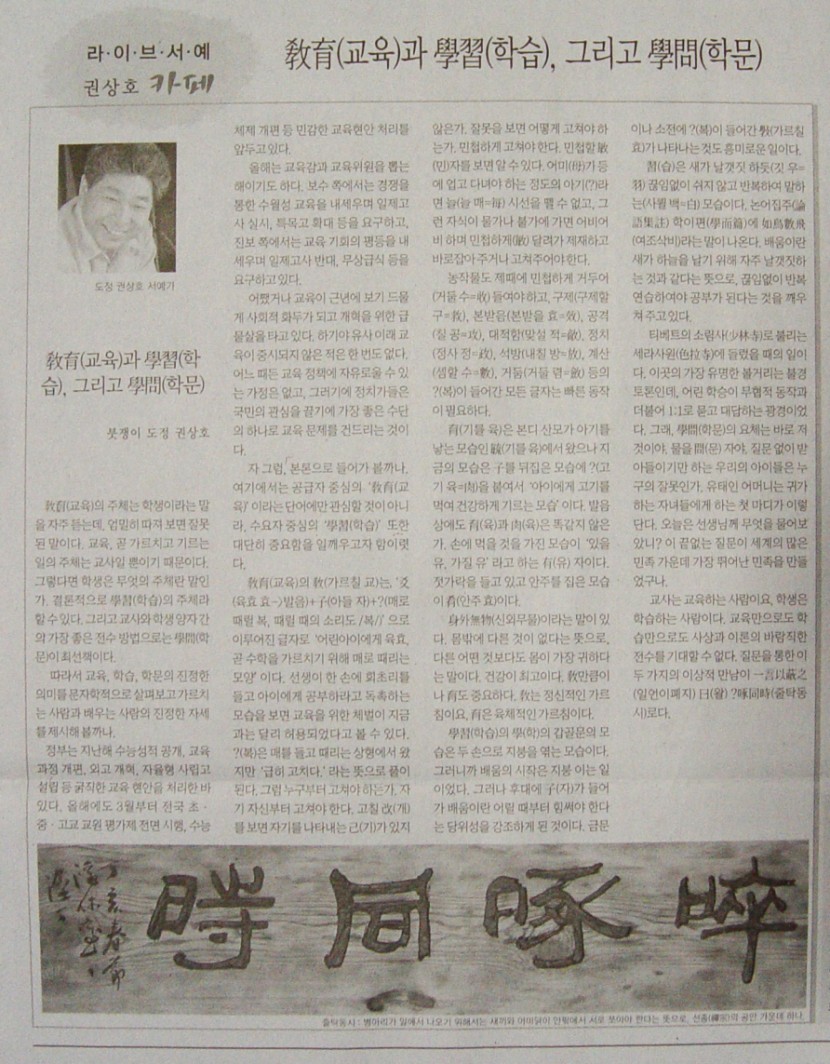 한국문학신문 칼럼 - 권상호 카페 - 敎育(교육)과 學習(학습), 그리고 學問(학문)(제7호)