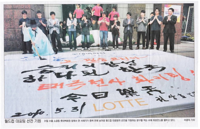 '초대형 붓글씨로 대한민국 16강을 기원합니다' 뉴시스 경제 2010.05.31 (월) 오후 1:48