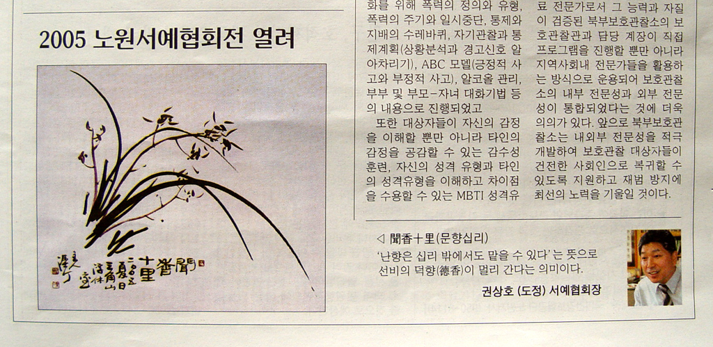 노원서예협회에 출품했던 작품 '聞香十里(문향십리) - 난초'가