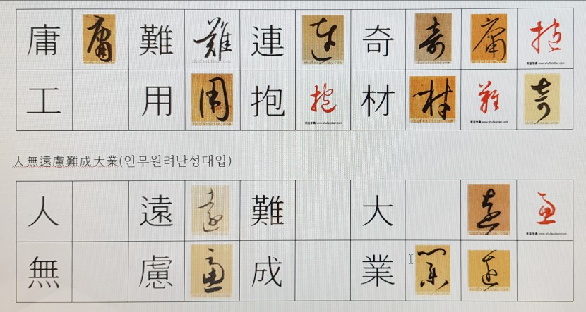 人無遠慮難成大業(인무원려난성대업) 사람이 먼 미래에 대한 준비가 없이는 큰일을 이루기 어렵다.