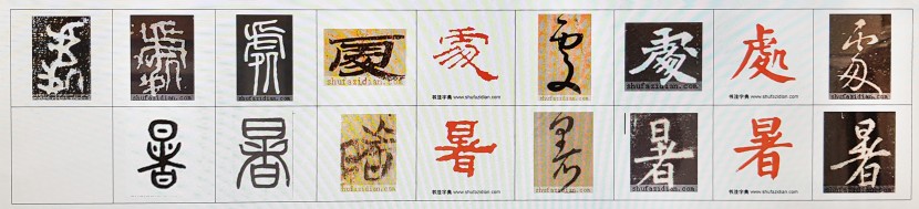 暑(더울 서; ⽇-총13획; shǔ)자는 '해(日)'와 '삶다(者)'의 합자로 '햇살이 삶듯이 덥다'는 뜻에서 출발한다. 暑(서)자는 해(日)가 있기 때문에 外氣(외기)에 의한 자연적인 더위라 할 수 있다. 그러나 熱(열)자는 밑에 불(灬)이 있기 때문에 원래는 가열(加熱)에서 보듯이 人工(인공)에 의한 열의 의미였으나, 나중에는 태양열(太陽熱), 열정(熱情) 등의 예에서 보듯이 '열', '열성' 등의 의미로 확대되었다. 暑(서)는 寒(한)의 반대자이고, 熱(열)은 冷(랭)의 반대자이다.