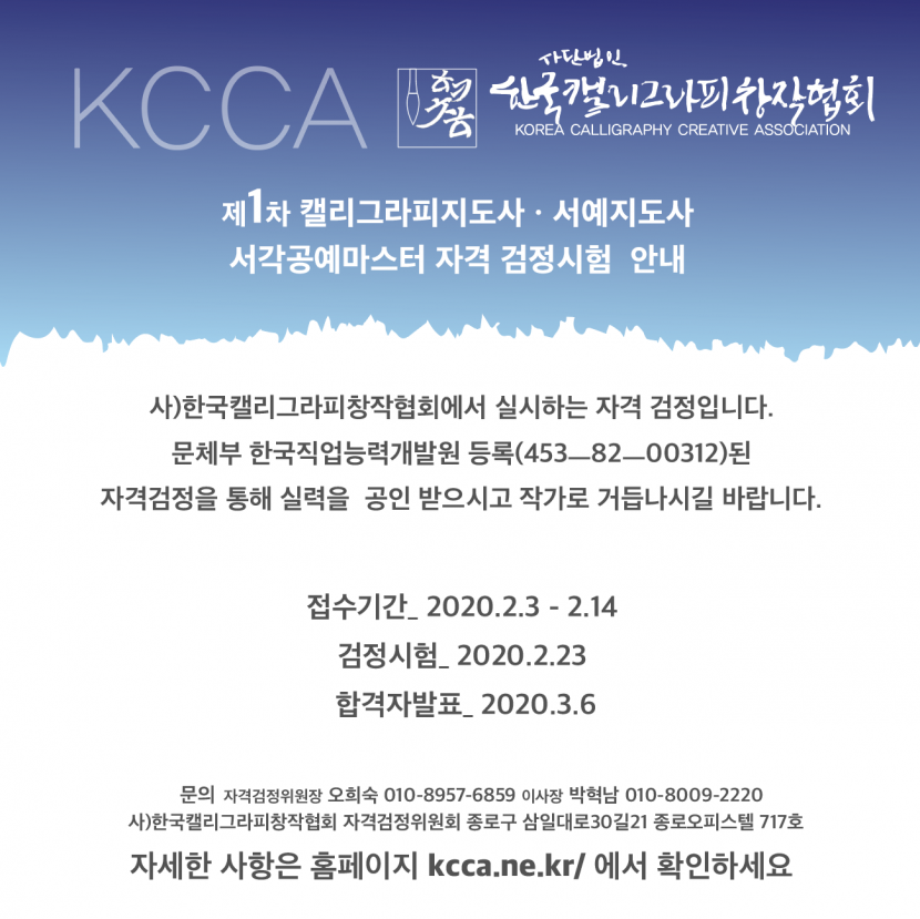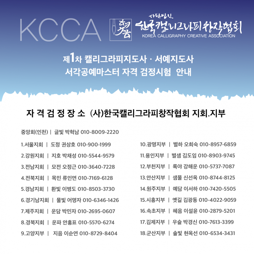 제1차 캘리그라피지도사, 서예지도사, 서각공예마스터 자격 검정시험 안내