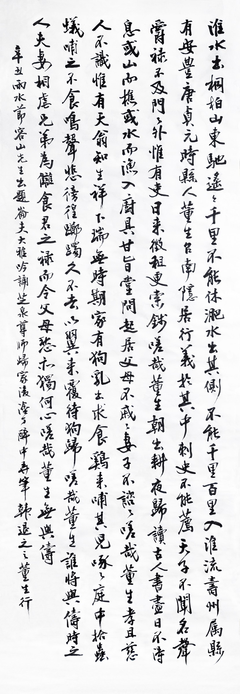 아! 동생(董生)이여, 아침에 일어나 밭 갈고 밤에 돌아와 옛사람의 글을 읽어 종일토록 쉬지 않네. 산에 가서 땔나무하고, 물에 가서 고기를 잡아 부엌에 들어가 맛있는 음식 장만하고, 마루에 올라가 문안드리니 부모님 근심하지 않으시고 처자는 원망하지 않누나.