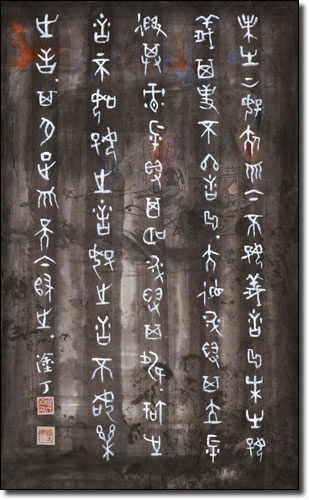 * 바탕에 원시 벽화를 그리고 여러 차례 먹을 입힌 후, 흰색 아크릴 물감으로 쓰느라 혼쭐났다.