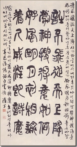 이규보 선생시 詩魔(시마) 병석에서도 시를 쓰지 않고서는 배겨내지 못한 고려시대 최고의 시인 이규보 선생시 '시마' 즐겨 애송하는 시 중의 하나로 전서를 行氣 있게 쓰면서 새로운 조형미를 살려보려고 하였다.
