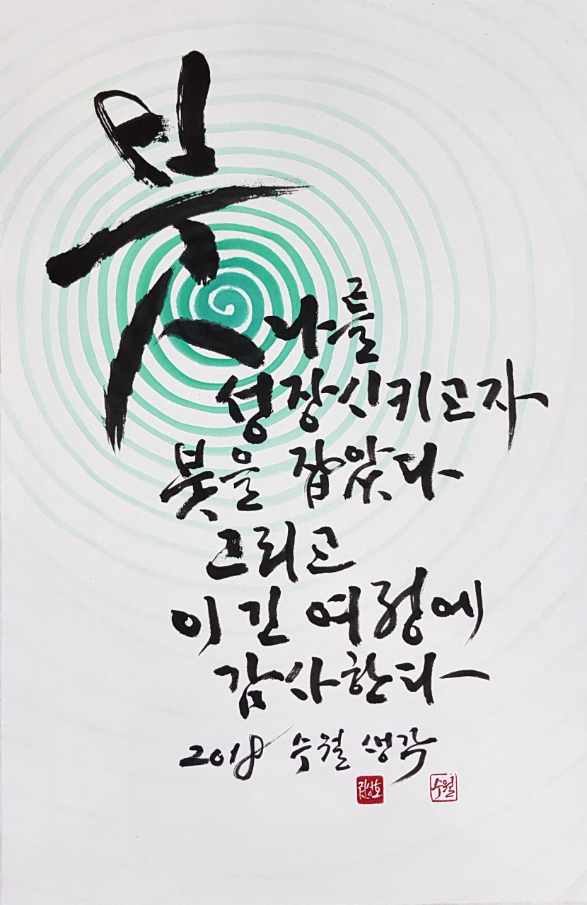 인생 여정은 ‘B-C-D’이다. 출생(Birth)에서 죽음(Death) 사이에 선택(Choice)이 있을 뿐이다. 그 많은 선택 가운데 붓을 잡은 일에 특별히 감사한다. 돌이켜 보면 붓과 동행하는 여정이 너무나 멀고 힘들지만 언제나 나를 성장시켜 준 것은 붓이었다.